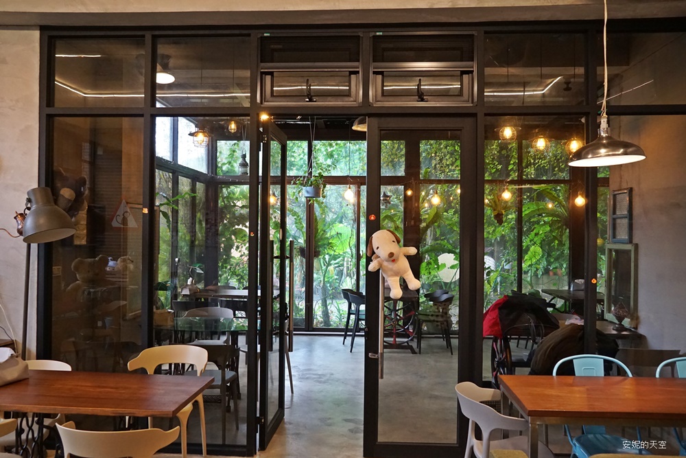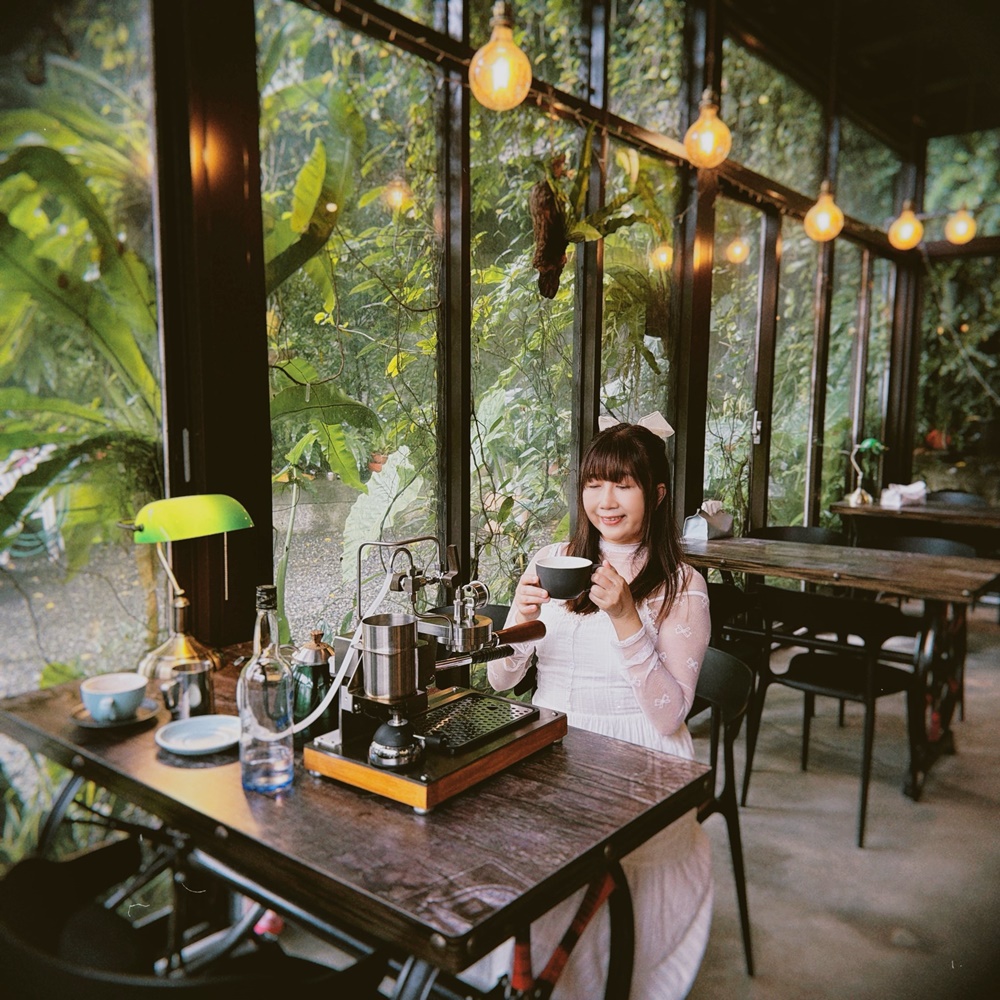 瑞格咖啡位在巷子底部,門口庭園滿滿蓊鬱的植栽,大面積的玻璃帷幕框住了咖啡館的神祕,旁邊還有一間覆蓋滿滿藤蔓的玻璃屋,充滿唯美的森林氣息,推開門,裡面別有洞天。