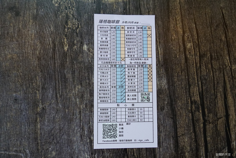 瑞格咖啡的價格很親民,最便宜一杯咖啡只要120元,厚片土司也只要50元,老闆開店應該是要交朋友。