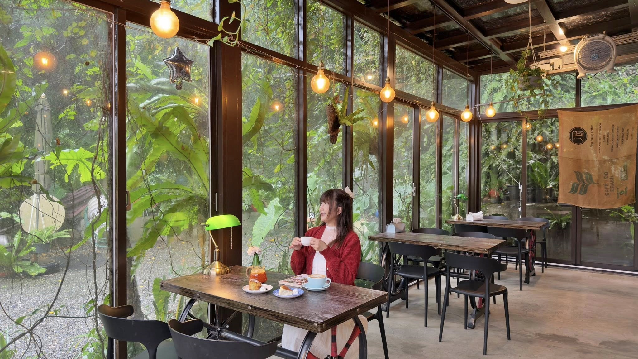 曾在網路上瞥見一張瑞格咖啡的照片,被那片玻璃屋裡滿滿的植栽深深吸引。它位在平常幾乎不會停留的四腳亭車站附近。那天原本要和朋友去爬山,卻遇上突如其來的雨,我們突然想起口袋名單裡的瑞格咖啡。就在火車停靠四腳亭的瞬間,我們臨時決定跳下車,前往探訪這間隱身在安靜車站旁的森林系咖啡廳。