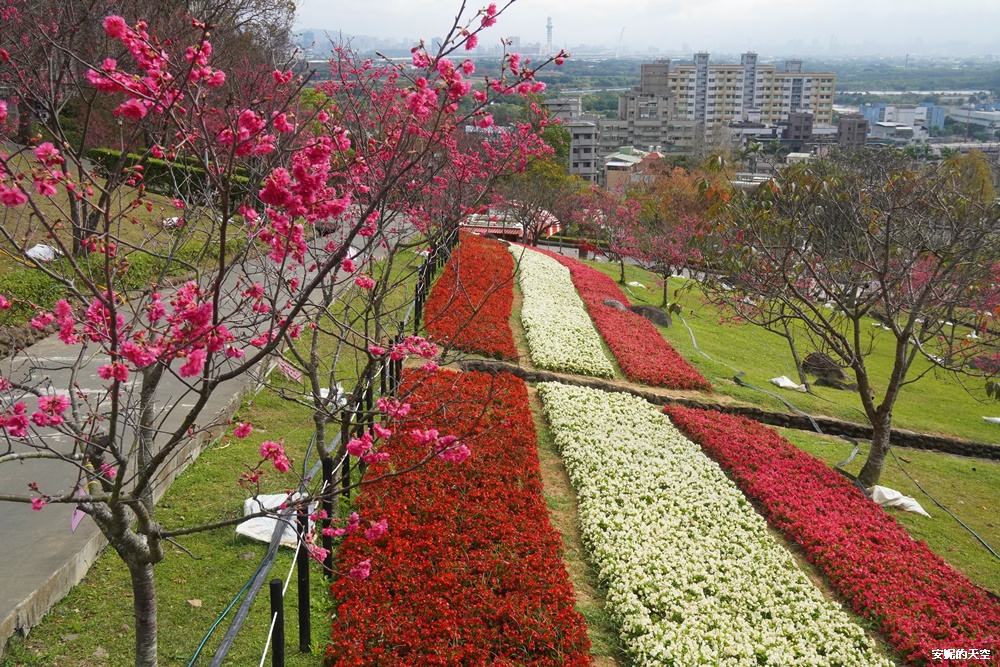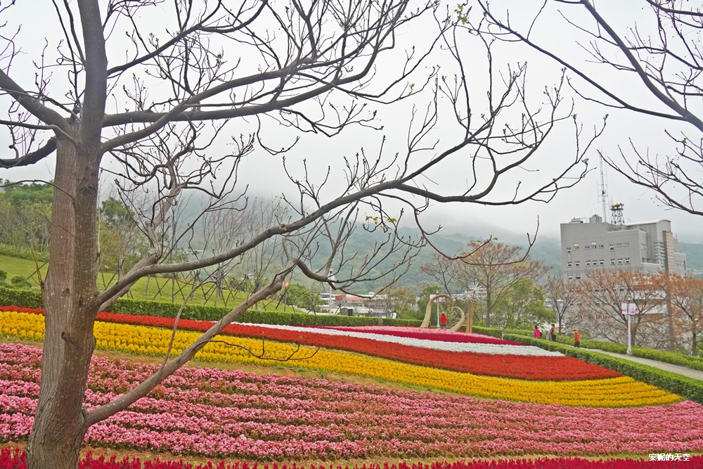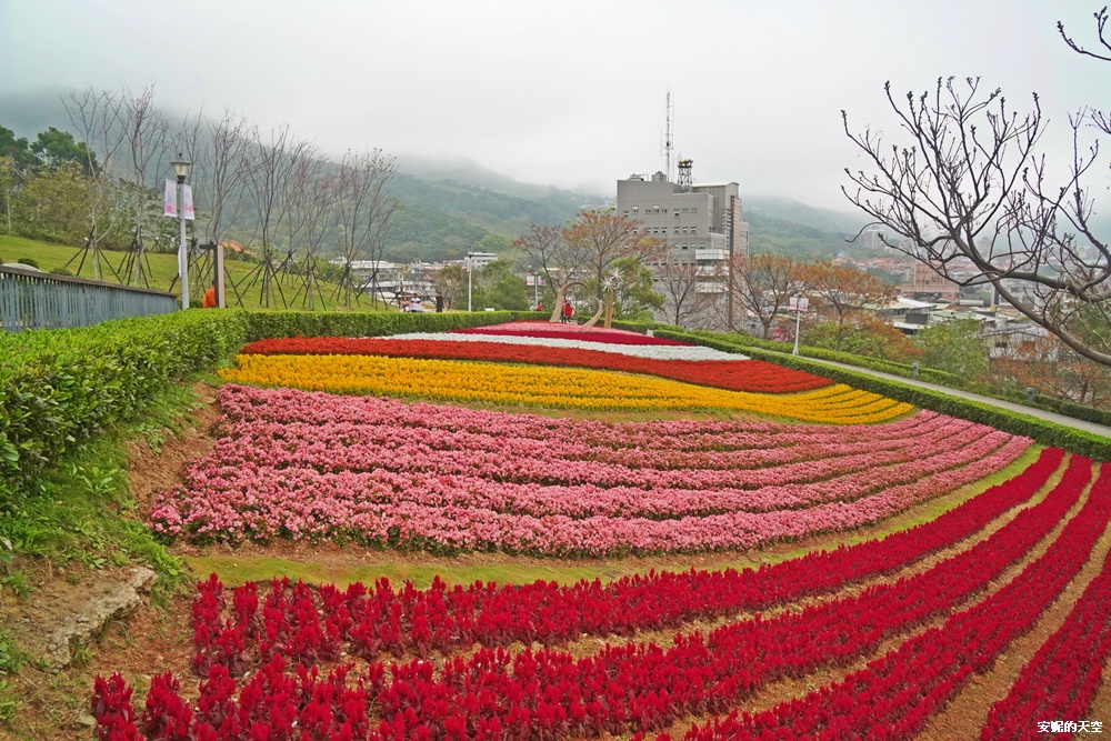 寬闊山坡交織出五顏六色的繽紛色塊,站在高處還能遠眺大屯山系與關渡平原,視野遼闊開展。這一大片花毯不只繽紛了北投山城,也陶醉了旅人的目光。