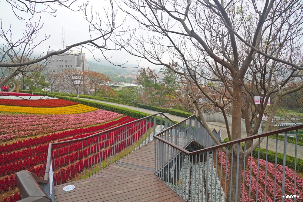 花毯之中貼心設置了觀景走道,讓旅人能輕鬆登高,置身花海之間。沿著步道緩緩前行,能以不同高度與角度與花對望,可以俯瞰整片繽紛花浪,也能貼近花叢細賞細節,讓賞花多了層次,也多了幾分沉浸式的浪漫體驗。