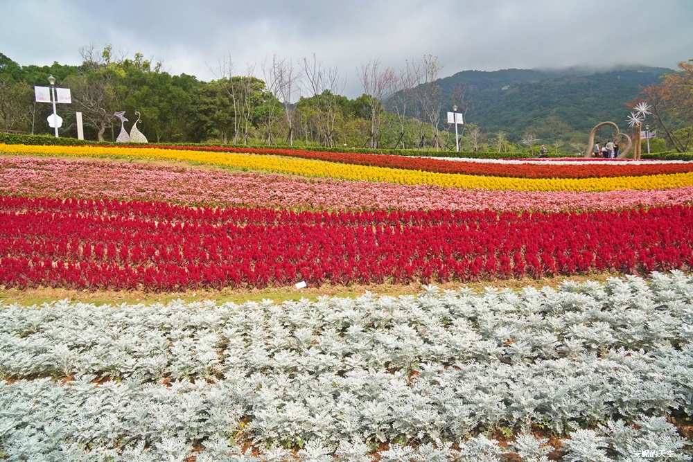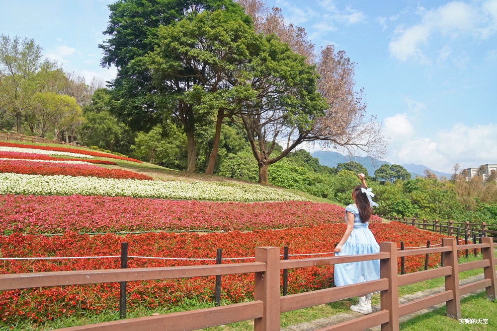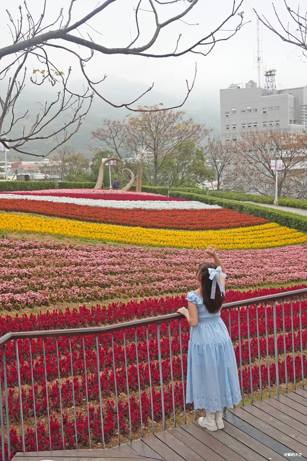 整片花毯由四季秋海棠、五彩石竹、雞冠花、銀葉菊、薰衣草等共16萬盆花卉精心交織而成,鋪陳出壯闊又細膩的色彩層次。當花浪隨著山坡起伏鋪展開來,不僅繽紛了北投山城,也讓旅人沉浸在專屬春日的浪漫風景之中。