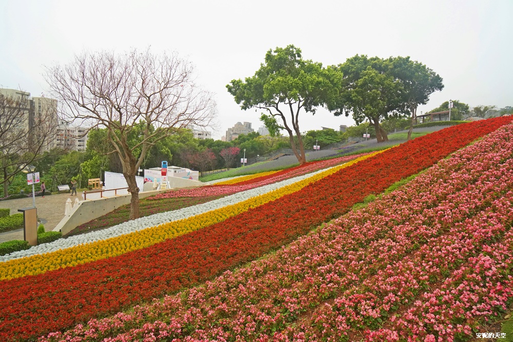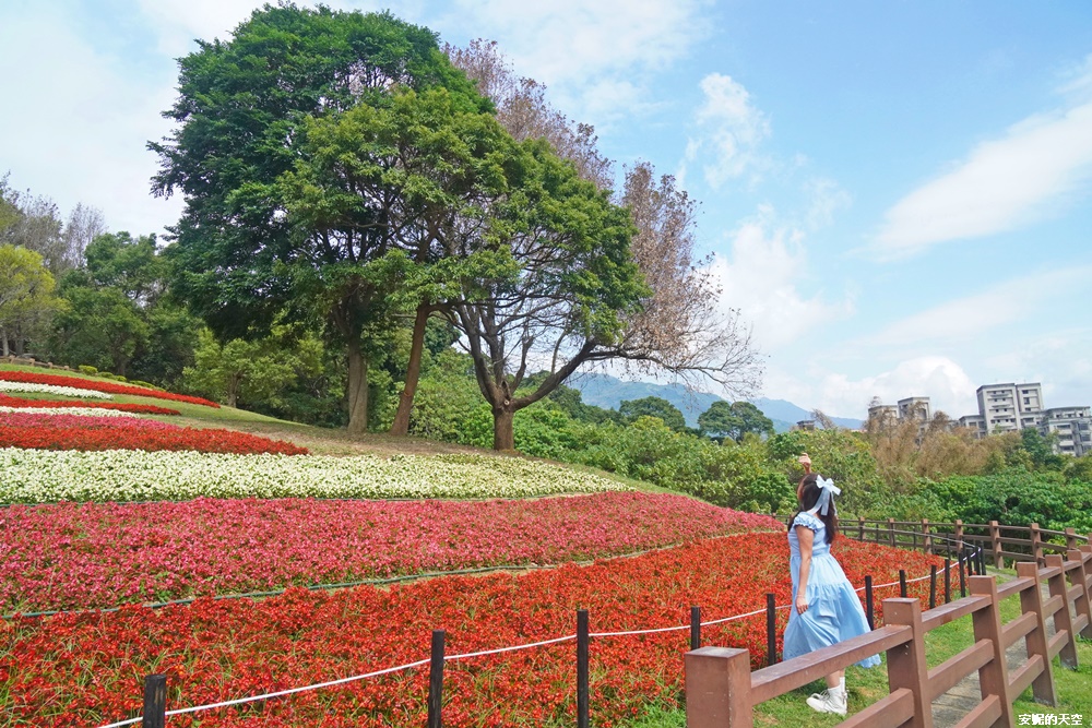 整片花毯由四季秋海棠、五彩石竹、雞冠花、銀葉菊、薰衣草等共16萬盆花卉精心交織而成,鋪陳出壯闊又細膩的色彩層次。當花浪隨著山坡起伏鋪展開來,不僅繽紛了北投山城,也讓旅人沉浸在專屬春日的浪漫風景之中。