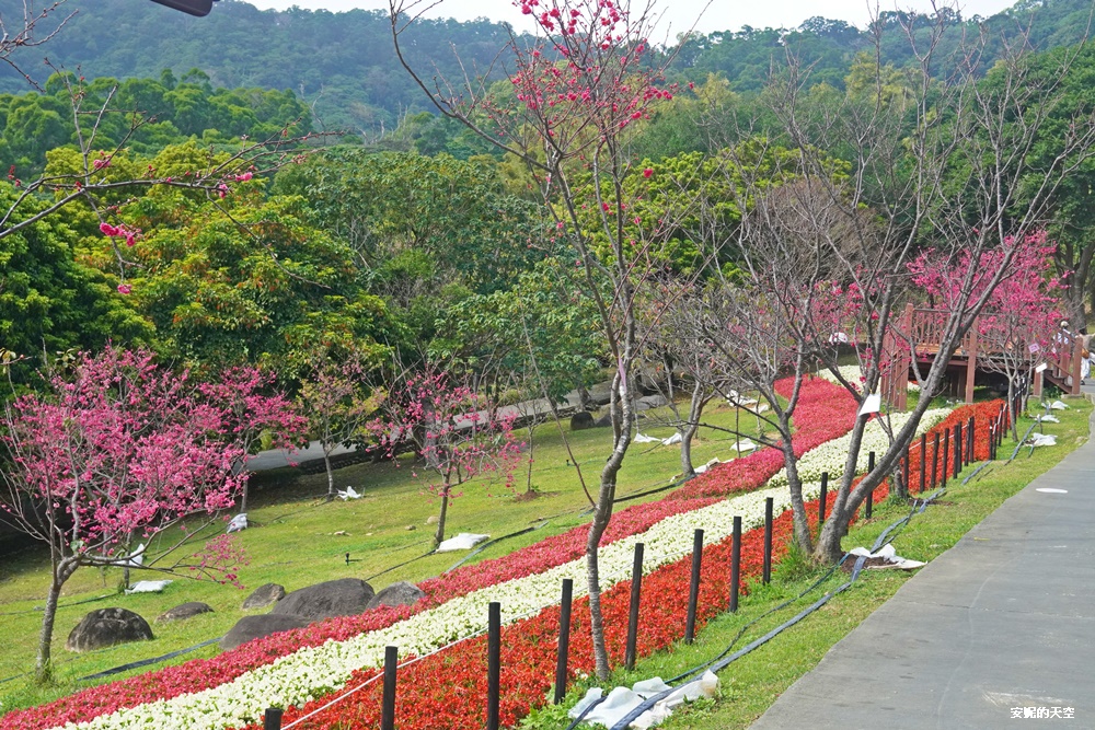 台北.東湖 │ 樂活公園 ,櫻花河岸步道 ,粉紅寒櫻、 桃紅八重櫻大盛開 。