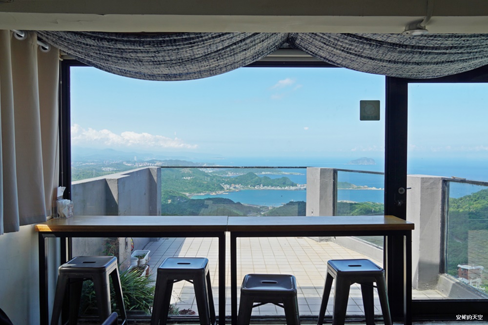 再往上走,三樓是整間店最讓人驚豔的地方——幾乎沒有死角的海景空間。坐在室內,就能輕鬆望見一整片壯闊的藍海,還能遠眺基隆嶼,景色真的美到會發呆。