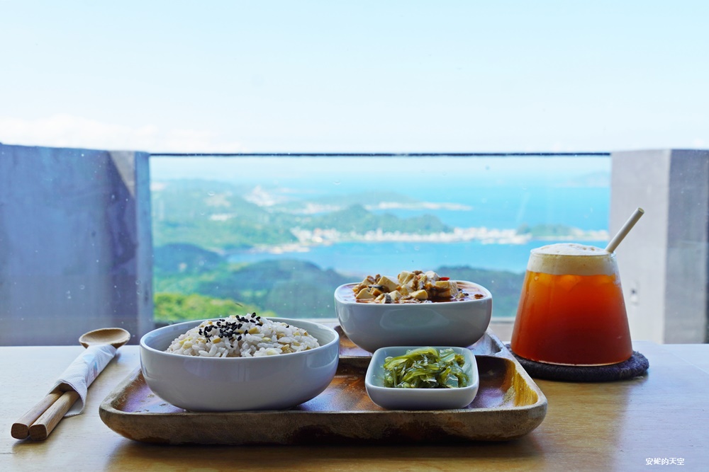 眼前就是唯美的藍海景觀,看海吃飯真的好療癒,能在九份山城裡收穫這樣的景觀,真的太愜意了。
