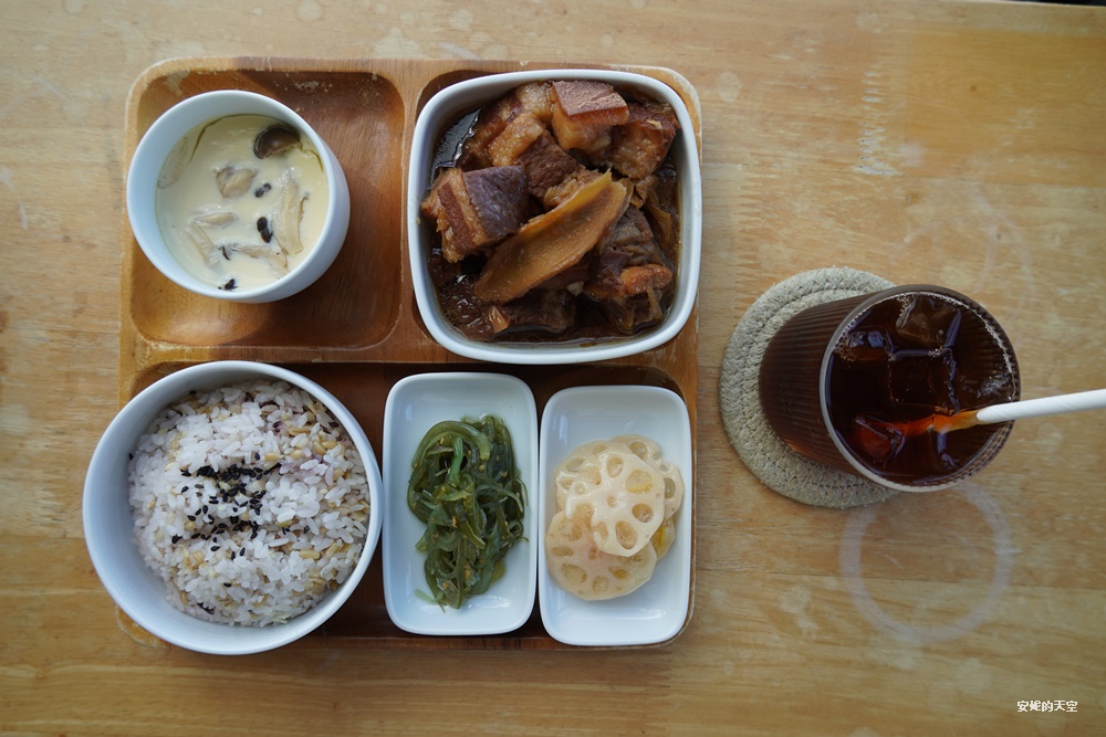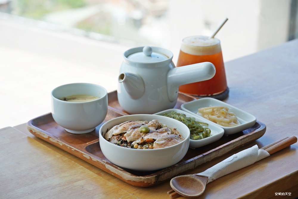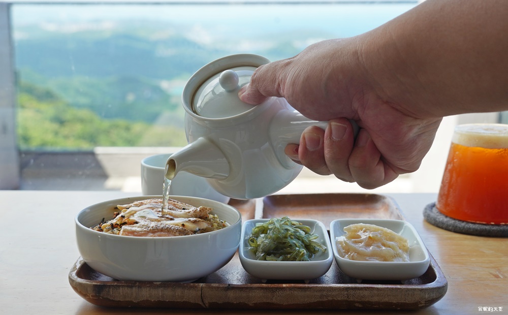最特別的是,還有一壺熱呼呼的金萱茶,可以淋在飯上,讓茶香與米飯完美融合,清爽又回甘。吃起來不只是飽足,還多了一種被療癒的感覺。