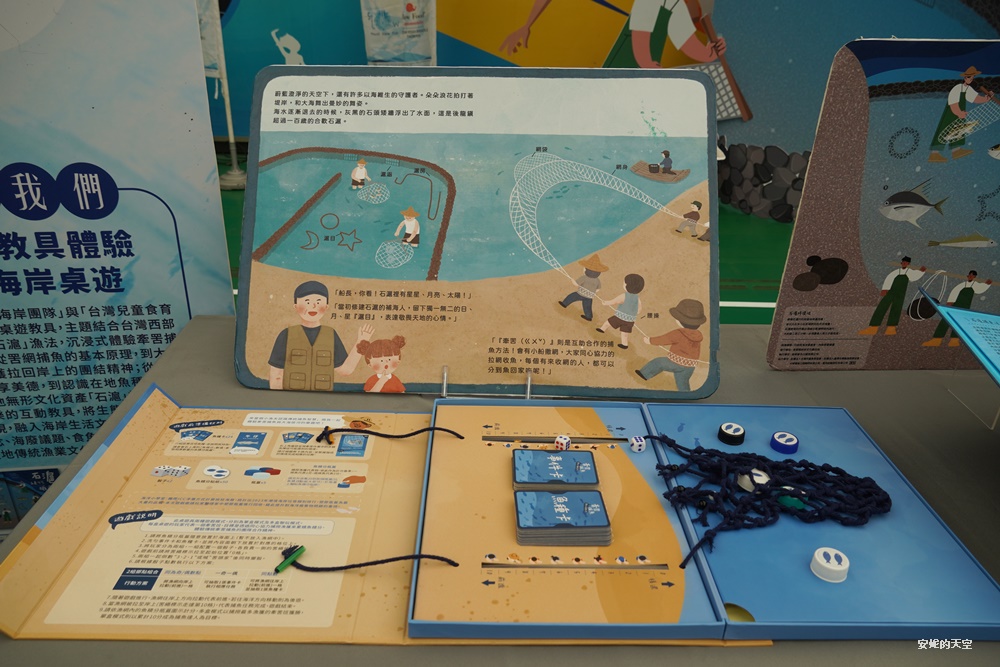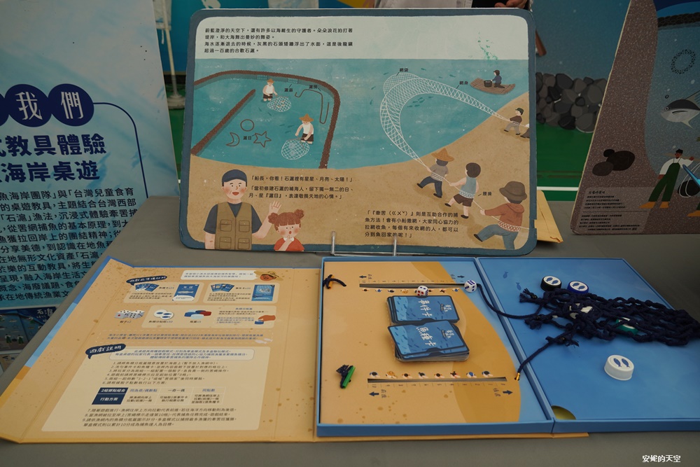使用由【苗栗慢魚海岸團隊】與【台灣兒童食育協會】共同開發桌遊教具,主題結合台灣西部傳統牽罟與石滬漁法,沉浸式體驗牽罟捕魚的多元文化,用桌遊方式體驗,傳承在地傳統漁業文化智慧。
