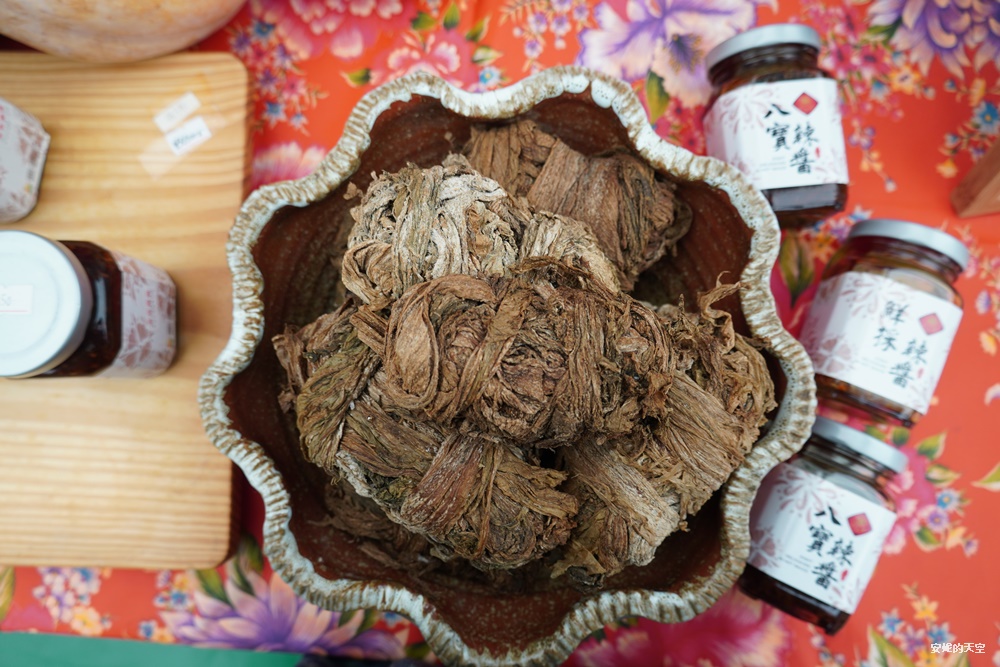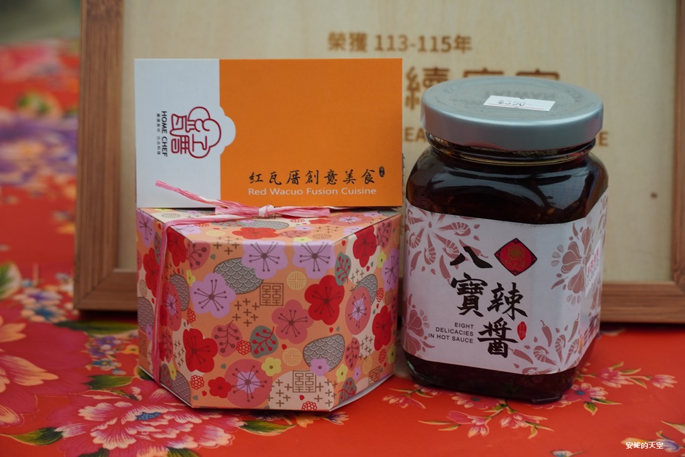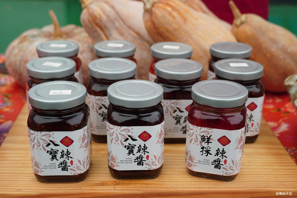 自製的八寶辣醬與鮮採辣醬也是當地特色伴手禮,還有客家美學的包裝,送禮自用都很合適。