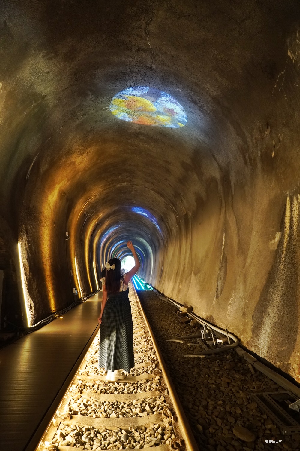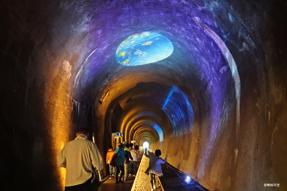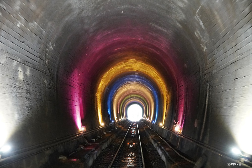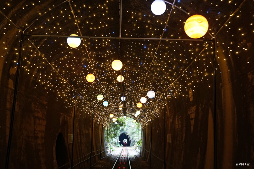 這一段隧道的串起了滿滿的燈串,宛若流離般的夢幻,在隧道間交織成奇幻的景色。