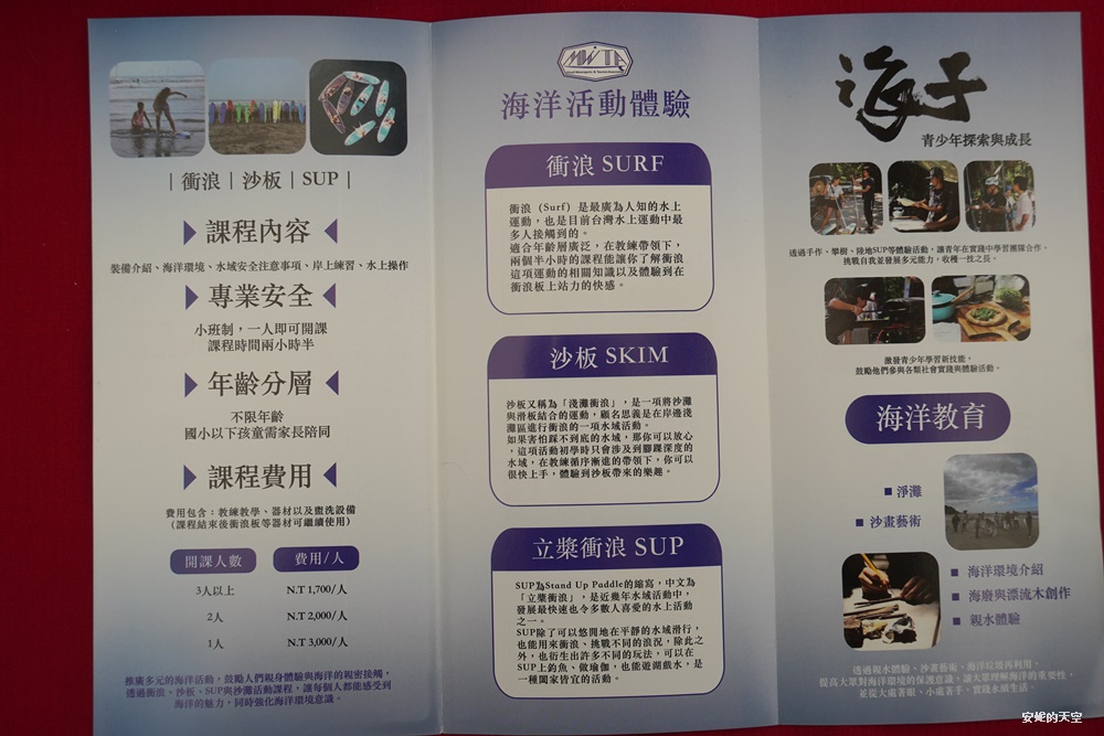 喜歡海洋水上運動的朋友可以參考,體驗SUP立槳、風浪板、獨木舟等多樣水上活動,在地導覽家海岸漫遊,認識竹南假日之森以及自然生態。