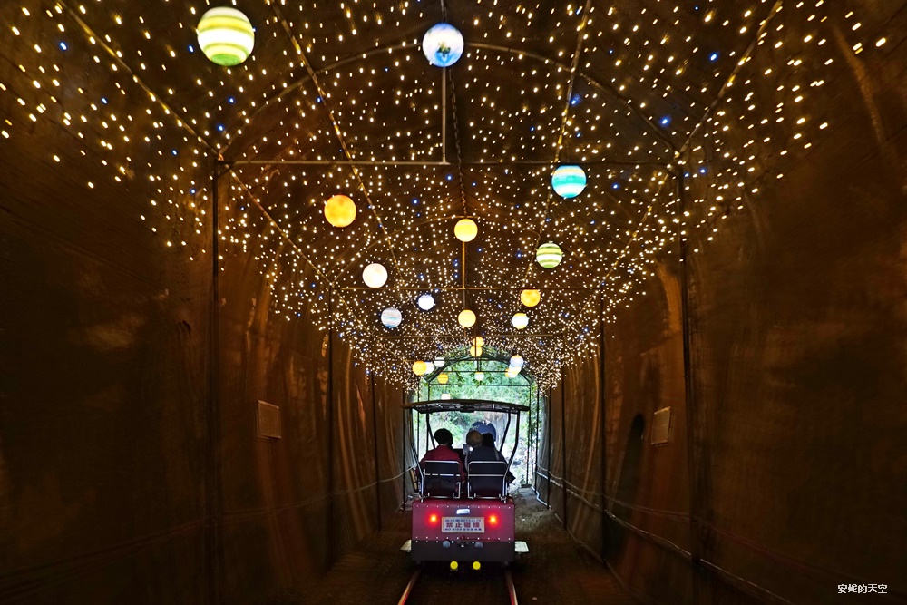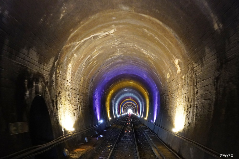 這一段隧道的串起了滿滿的燈串,宛若流離般的夢幻,在隧道間交織成奇幻的景色。