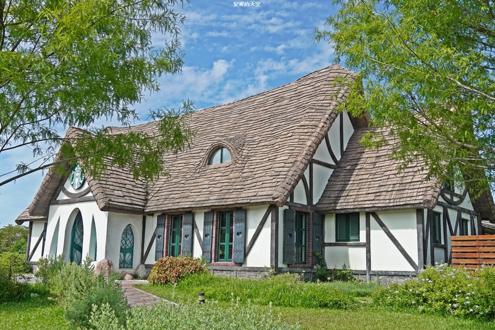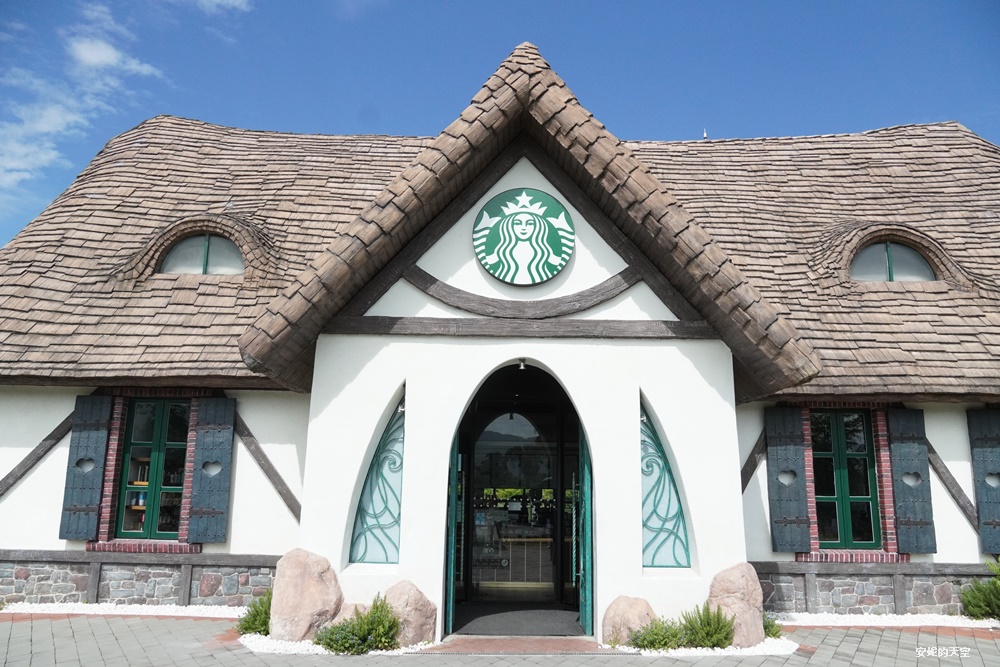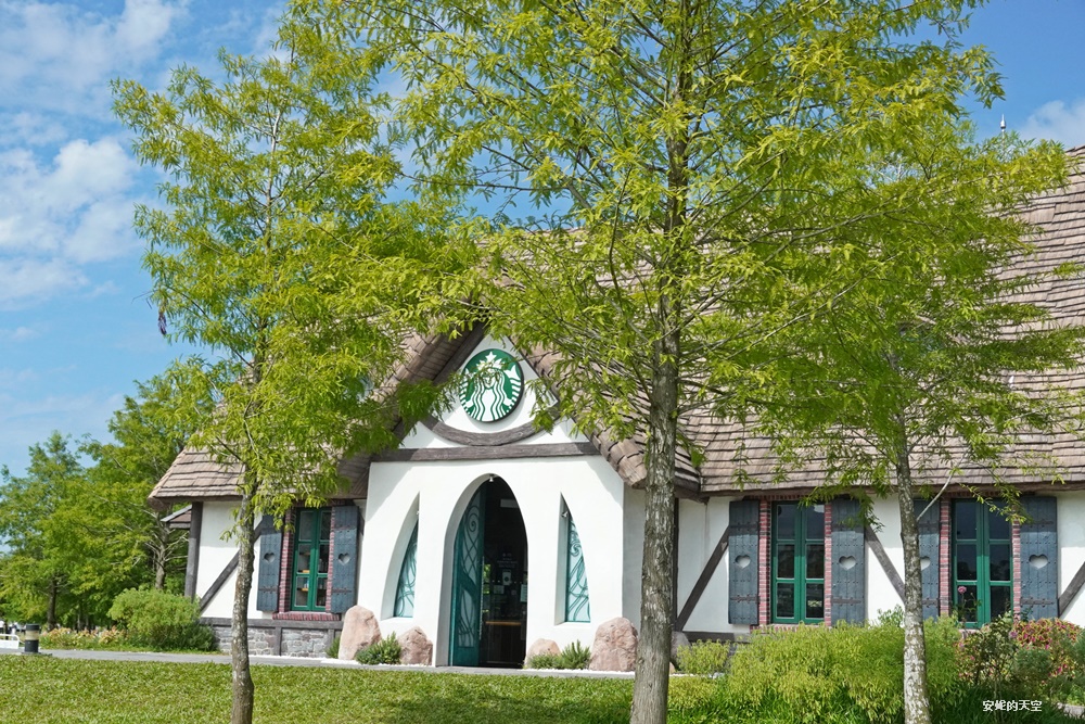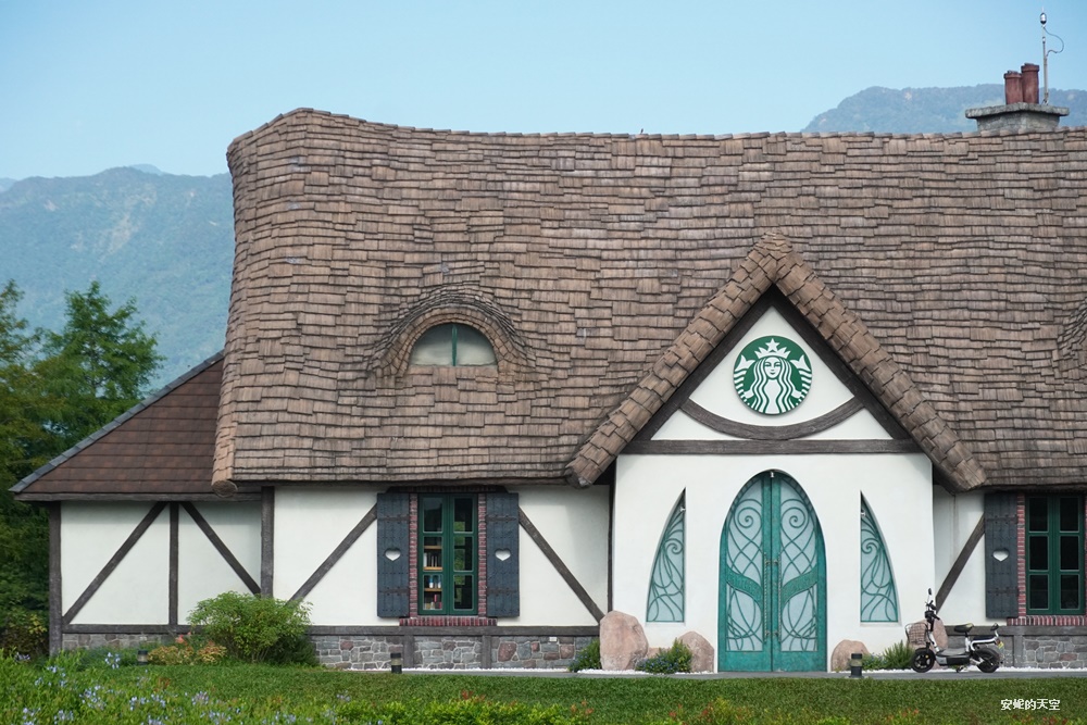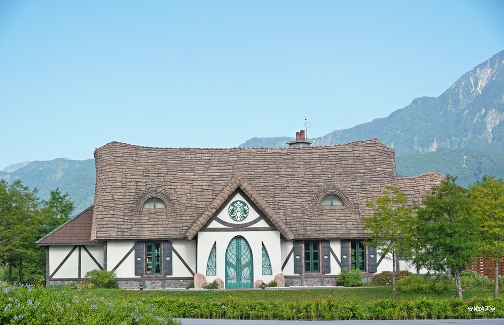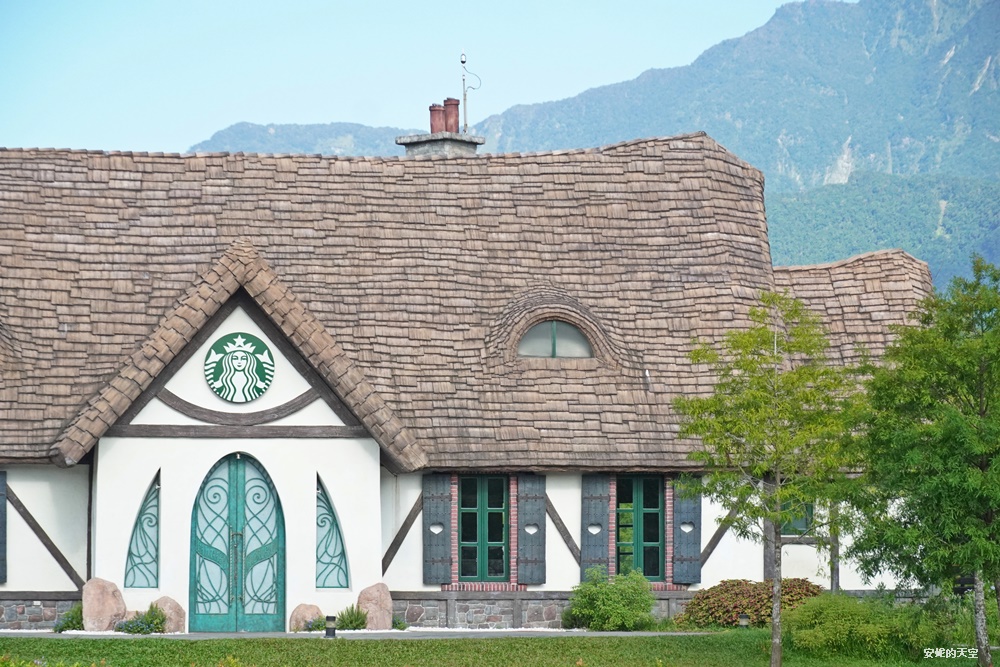 星巴克花蓮理想門市,有全台最美的星巴克的美譽。這裡佔地相當廣闊,猶如走進一幅油畫畫作之間,落羽松步道蜿蜒其間,搭配環湖造景,依偎在壯麗山景之下,整座建築彷彿電影裡精靈居住的夢幻城堡。夢幻的尖塔屋頂、真實的煙囪、獨特的貓眼窗戶,每個細節都讓人驚艷。