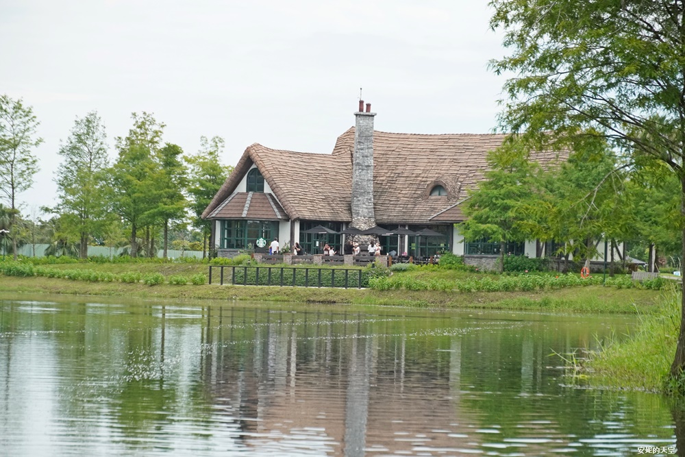 從湖面上看星巴克,視角更美了,還有唯美的倒影。
