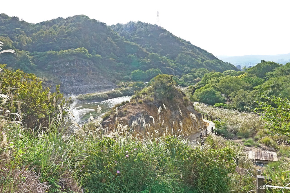 每隔幾百公尺就會有一個木造景觀台,有著芒花加持更增添詩意,在這裡山谷的完整面貌盡攬眼底,雖然空氣裡盡是硫磺的濃厚氣息,這是屬於北投的獨特氣味,聞久了好像也不那麼刺鼻難聞了。