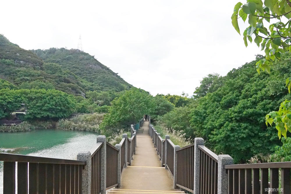 這裡海拔約194公尺,緯度不高,所以走起來相當輕鬆,氣候也與平地相似,步道會通往龍鳳谷的遊客中心,快到頂端時出現了像是龍貓隧道感的森林,陽光自樹隙下灑落莫名好有詩意。