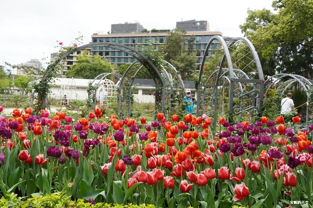 士林官邸門口的鬱金香就讓遊客瘋狂,不過安妮想要建議大家直接往賞花園區裡面走,這裡面的腹地遼闊,也有較多的造景,在這裡賞花特別的愜意。