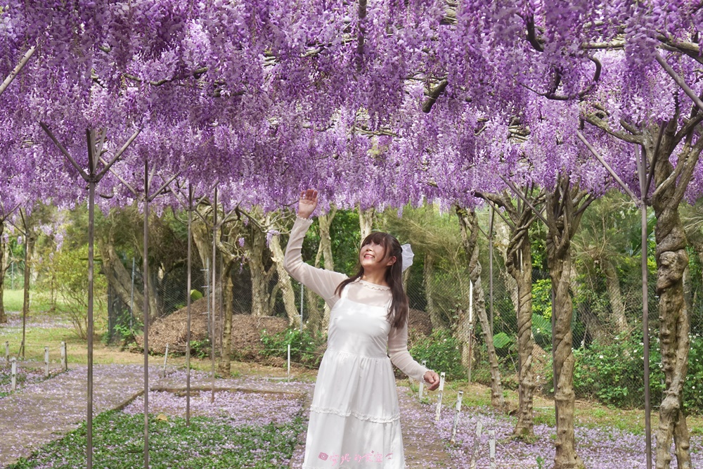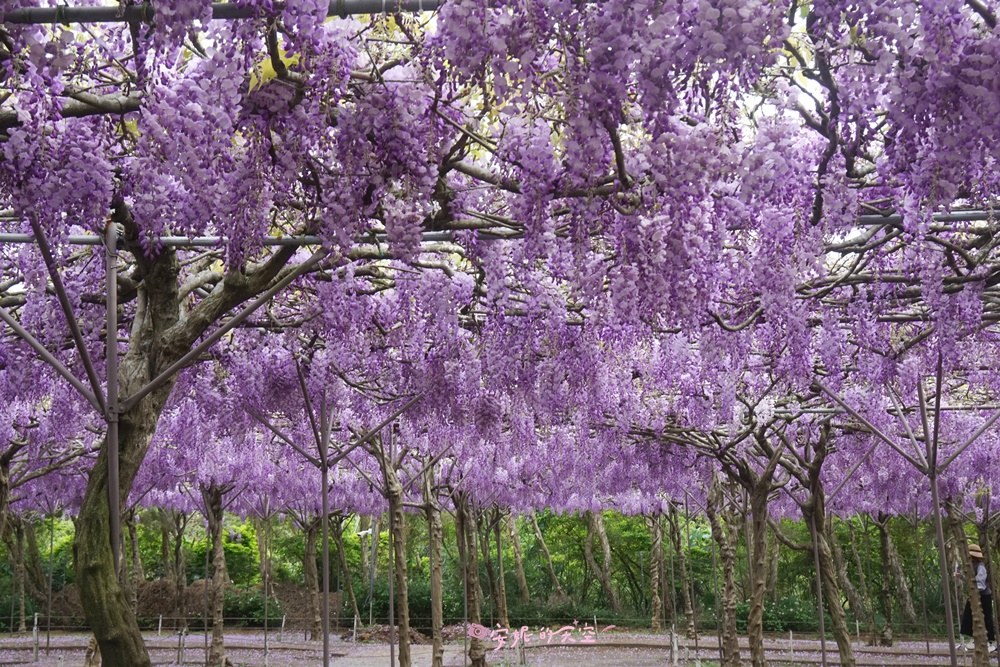 終於來朝聖全台最大的紫藤花園,一走進園區,便被滿滿的紫藤花瀑包圍,這裡有上千株的日本紫藤,園區很貼心,滿開的時候才會開放,讓旅客一走進,便能感受到紫藤花的春意盎然。