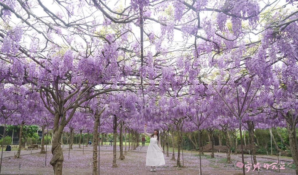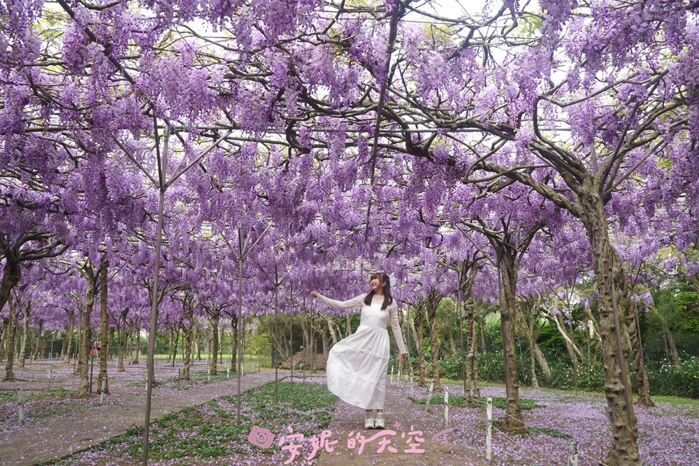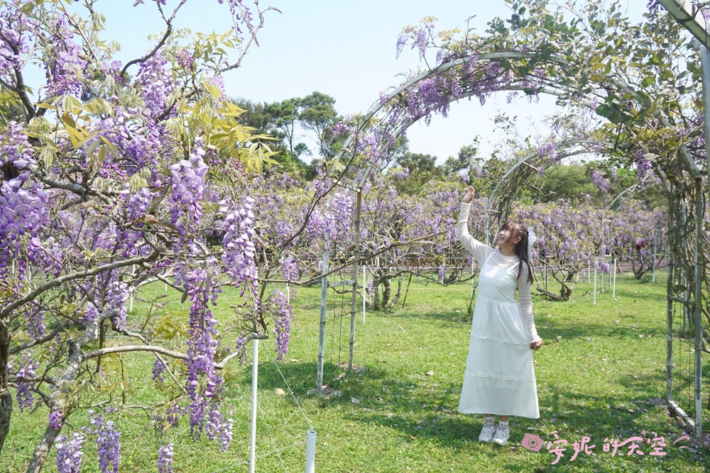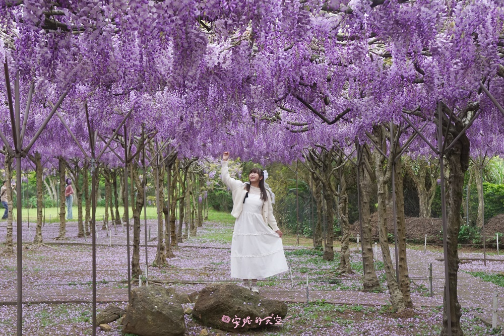 每年春季,正是紫藤花盛開的時節。全台最大的紫藤花園——淡水紫藤花園二號園區,種植了上千株日本紫藤,園區占地遼闊,規劃出多個紫藤花海與夢幻隧道。