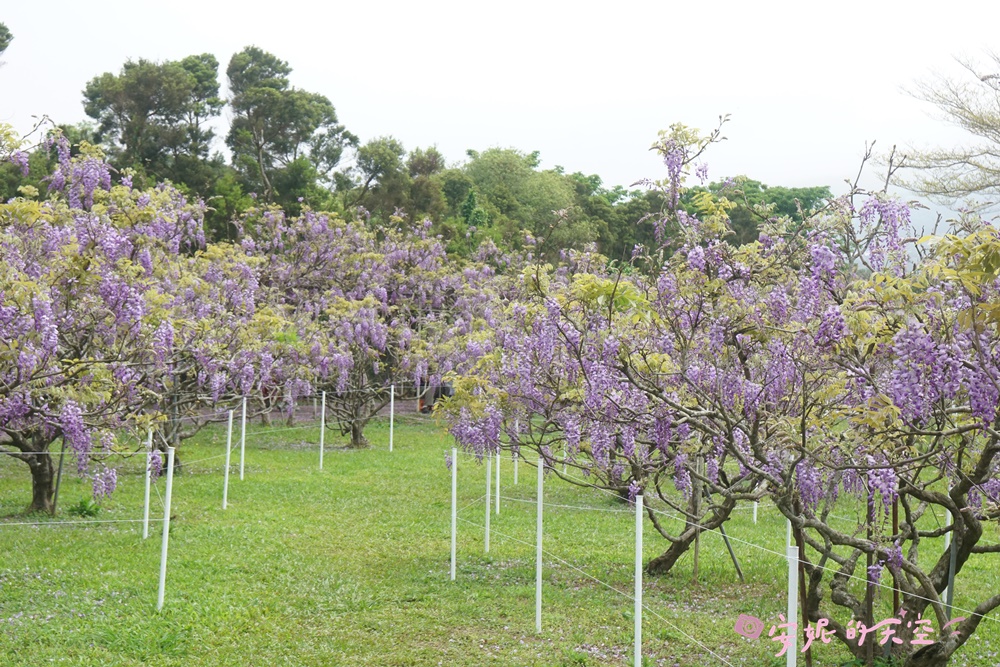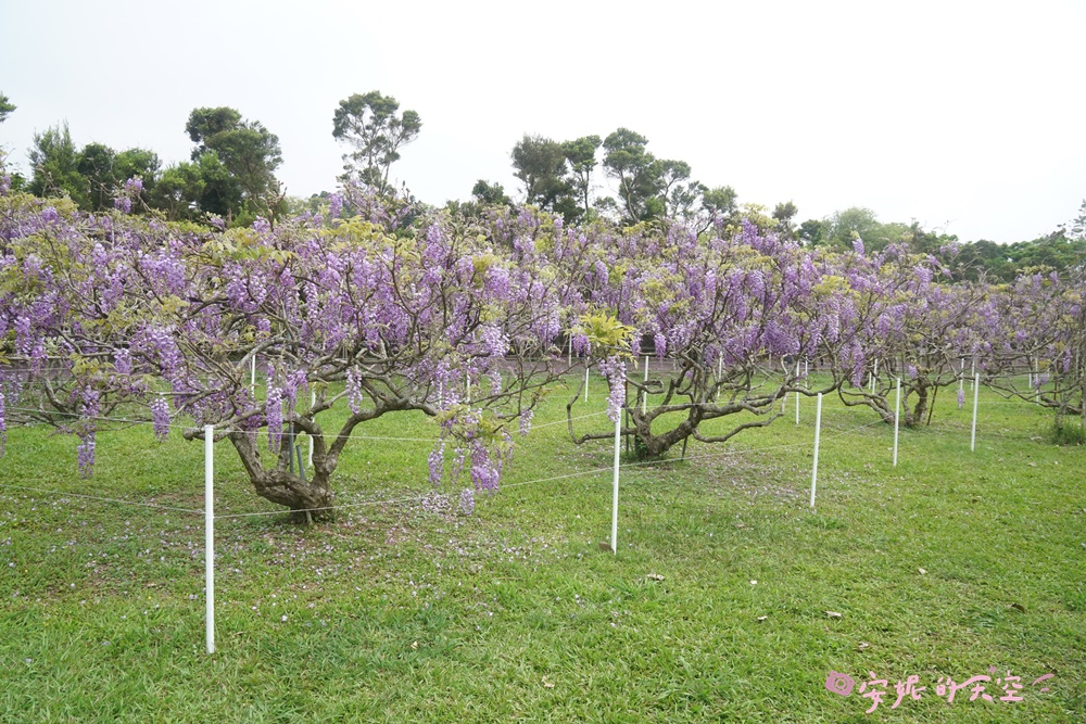 發現這裡的紫藤花有用心的照顧,一簇簇的花串,沒有多餘的枝葉,整片花園都是夢幻的紫色,不得不佩服園區的用心照料。