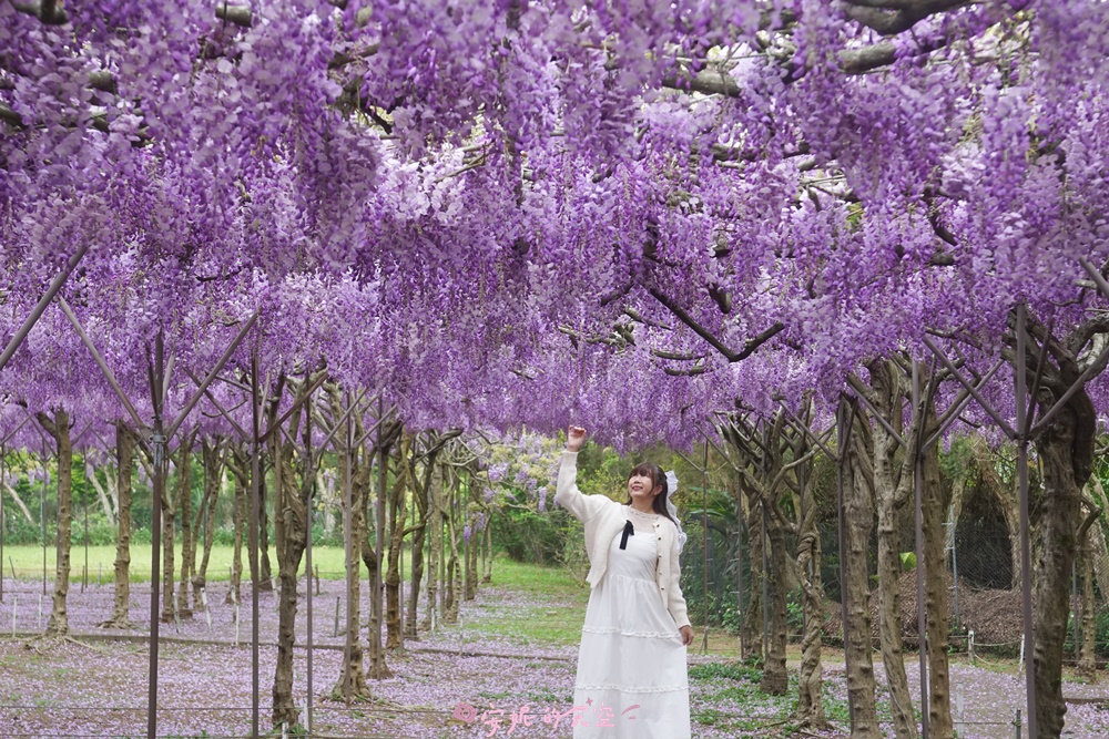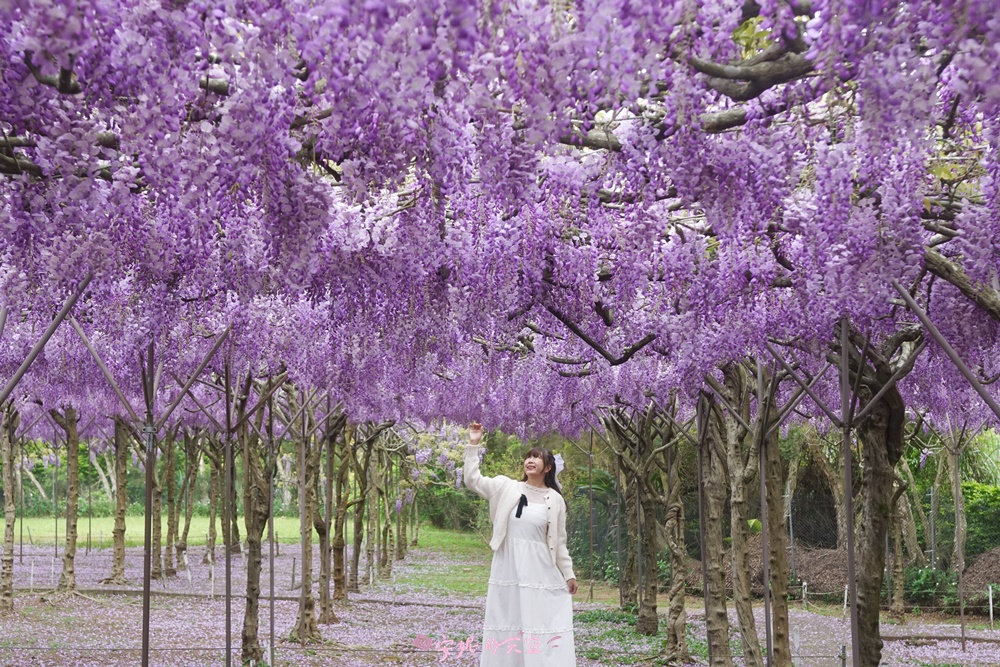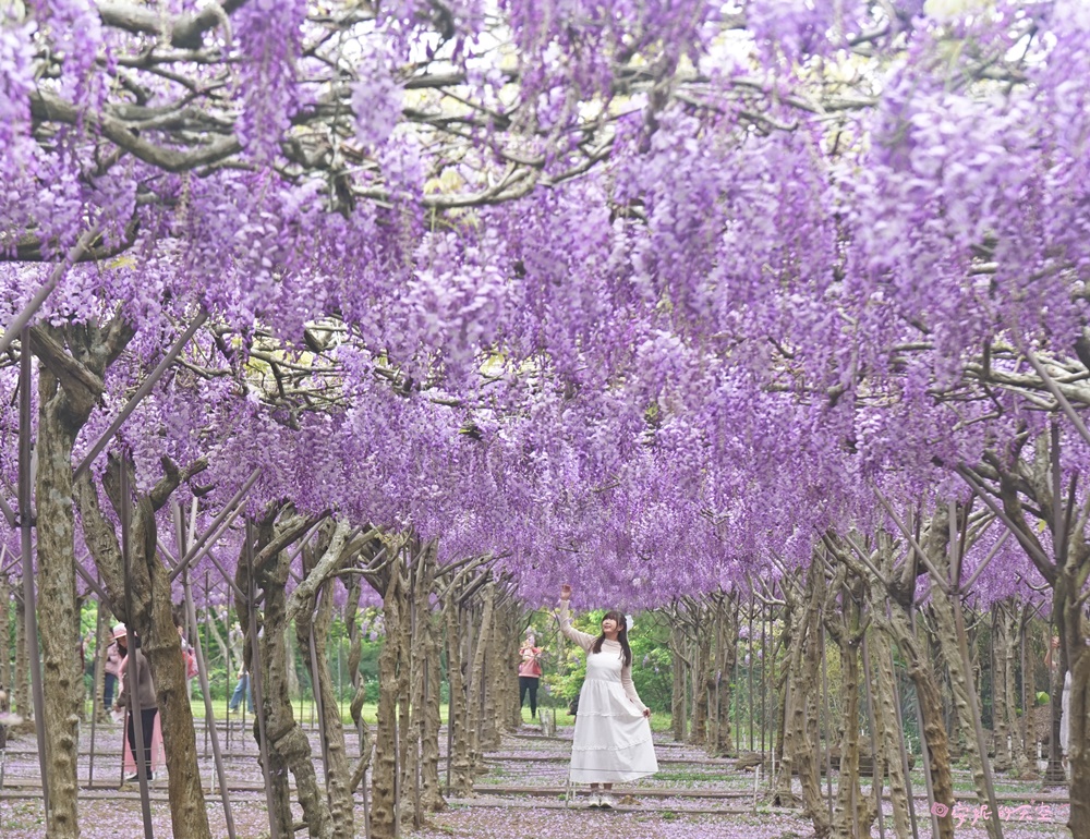 每年春季,正是紫藤花盛開的時節。全台最大的紫藤花園——淡水紫藤花園二號園區,種植了上千株日本紫藤,園區占地遼闊,規劃出多個紫藤花海與夢幻隧道。